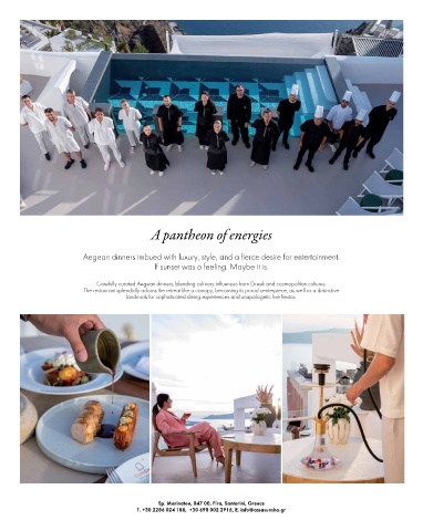 Carefully curated Aegean dinners, blending culinary influences from Greek and cosmopolitan cultures.