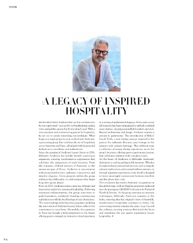 WHEN MILTIADIS Andronis first set foot on Santorini, in a setting of understated elegance. Every suite across
