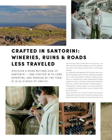 S ANTORINI — ONE CRAFTED WITH CARE, than the typical postcard moments. Whether your passion and Megalochori, where Venetian influence and wine