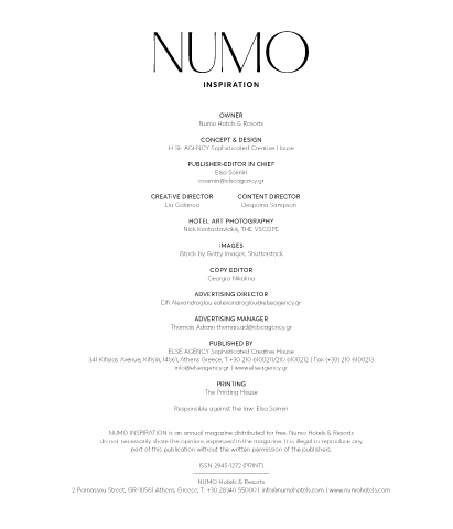 NUMO INSPIRATION is an annual magazine distributed for free. Numo Hotels & Resorts IMATIA