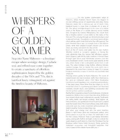 the timeless beauty of Mykonos. A few steps away, Màre Màre Pool Bar begins to stir. It’s Numo Mykonos blend