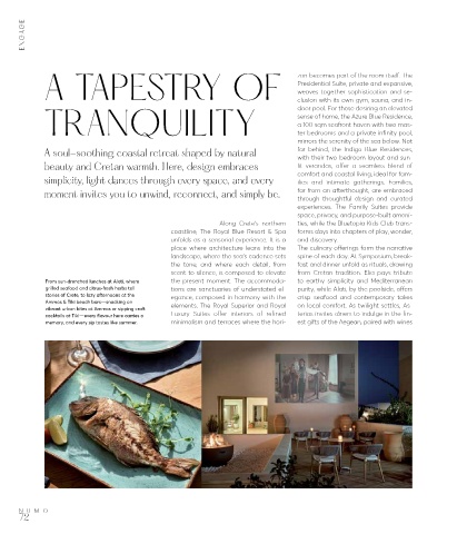 grilled seafood and citrus-fresh herbs tell tions are sanctuaries of understated el- purity, while Alati, by the poolside, offers