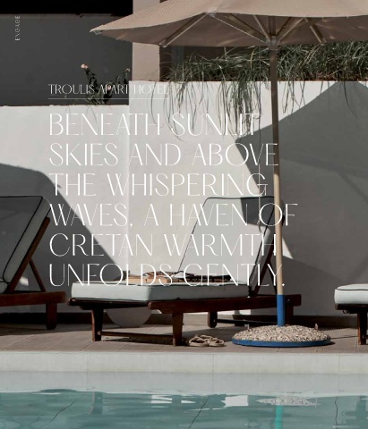 E N GAG E TROULIS APART HOTEL BENEATH SUNLIT SKIES AND ABOVE THE WHISPERING WAVES, A HAVEN OF CRETAN WARMTH UNFOLDS GENTLY. Effortless moments by the pool — sun, silence, and the simple elegance of summer in Crete.