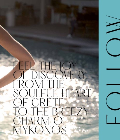 Sun, salt, and the call of C O NNECT new destinations. Step out, explore, and let it all unfold at your own rhythm. FEEL THE JOY LOW OF DISCOVERY, FROM THE L SOULFUL HEART OF CRETE O TO THE BREEZY CHARM OF F MYKONOS N U MO N U MO 80 81