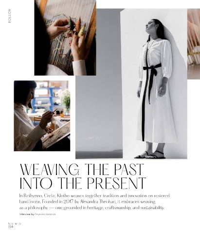 hand looms. Founded in 2017 by Alexandra Theohari, it embraces weaving Klotho’s creations look modern but have a warm people — a place that has so much